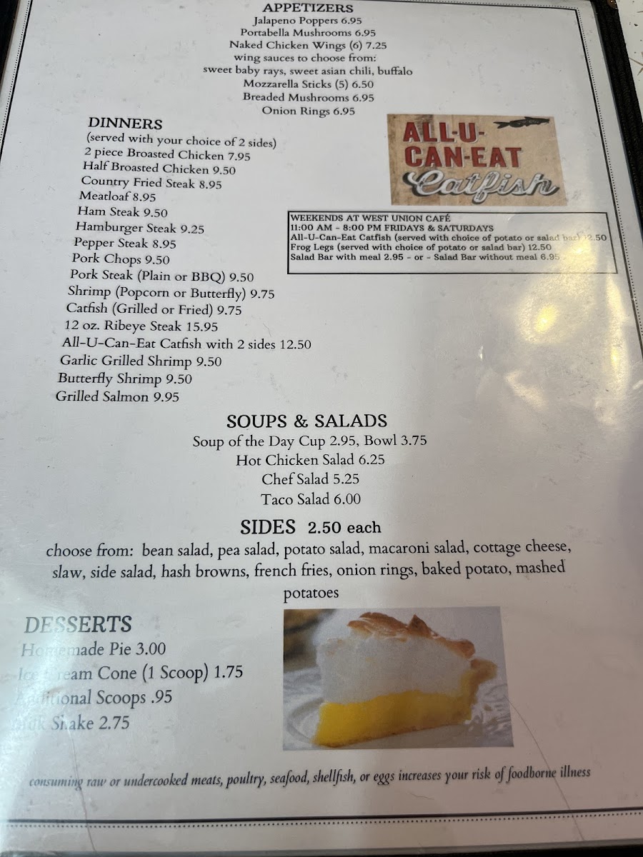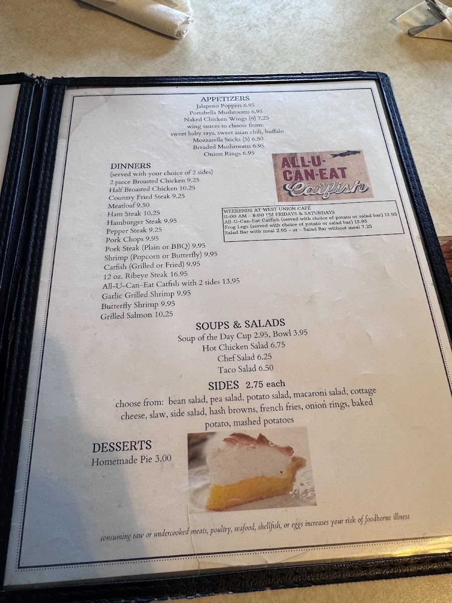 Welcome to West Union Cafe, a cozy dining haven nestled in West Union, Illinois. As you step in, you'll be embraced by the warm, inviting atmosphere reminiscent of home. The menu is a delightful blend of specialty sandwiches, from the classic Grilled Cheese to the hearty Country Fried Steak and the irresistible Catfish Sandwich, which patrons rave about.